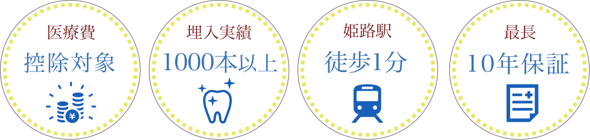 痛みの少ない治療や、音や振動による恐怖や緊張によるストレスがある方には気持ちをリラックスさせる笑気麻酔や、静脈から薬剤を点滴し半分眠った状態で治療を行うことも可能です。また、ライフスタイルに合わせた短期・集中治療についてもお気軽にご相談いただけます。治療後も最長10年の保証制度があり、定期的なメンテナンスにより一生涯インプラントを保てるようサポートさせていただきます。